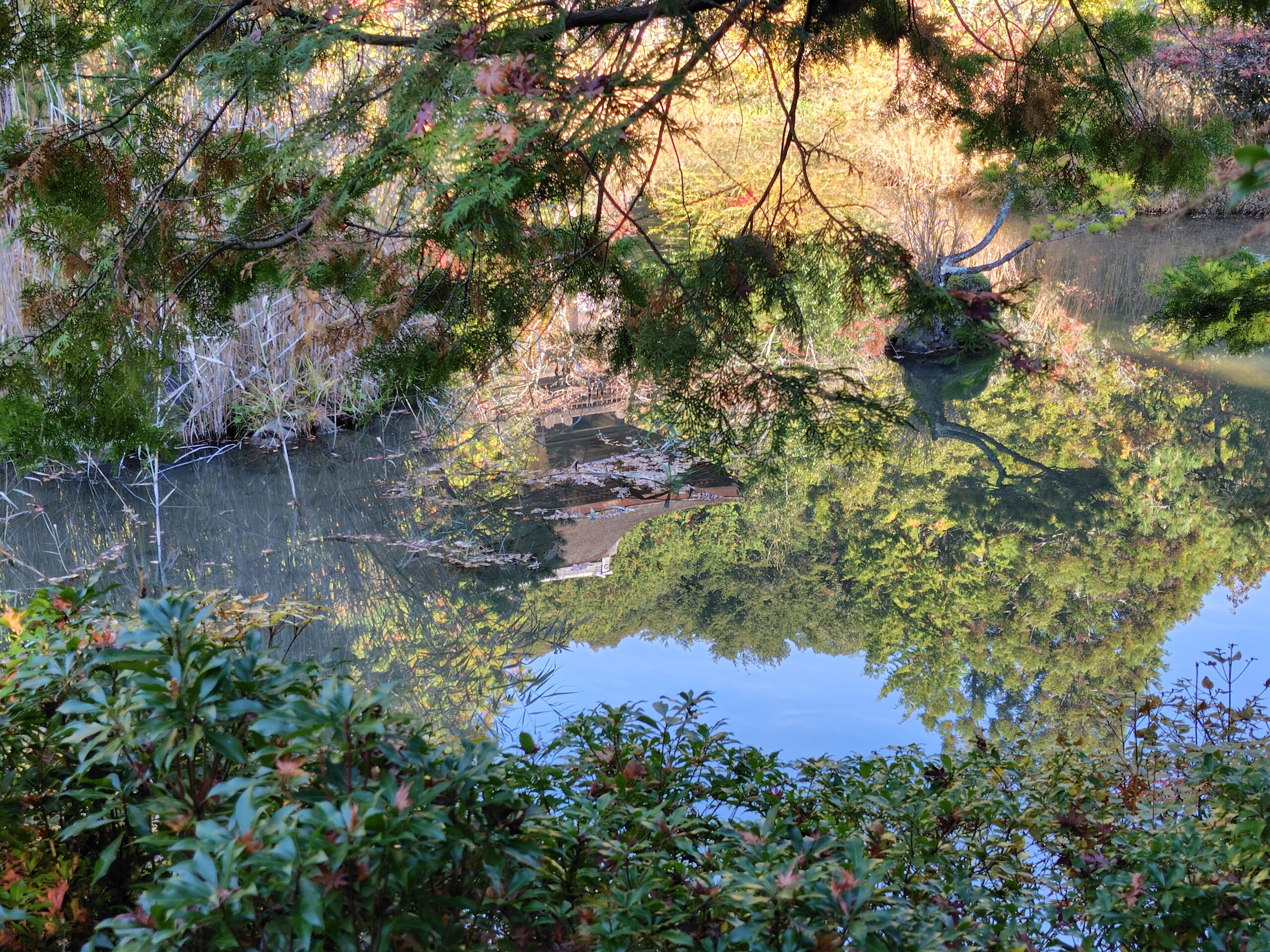 池の水面に映り一層美しい・・・解るかな?