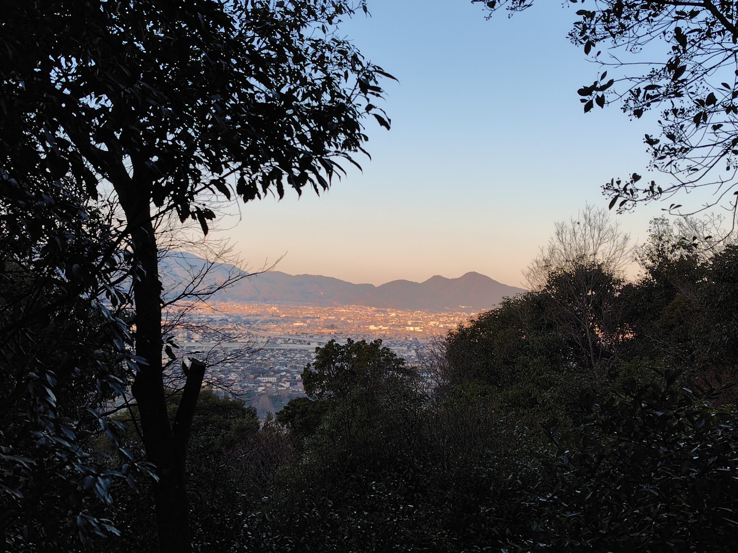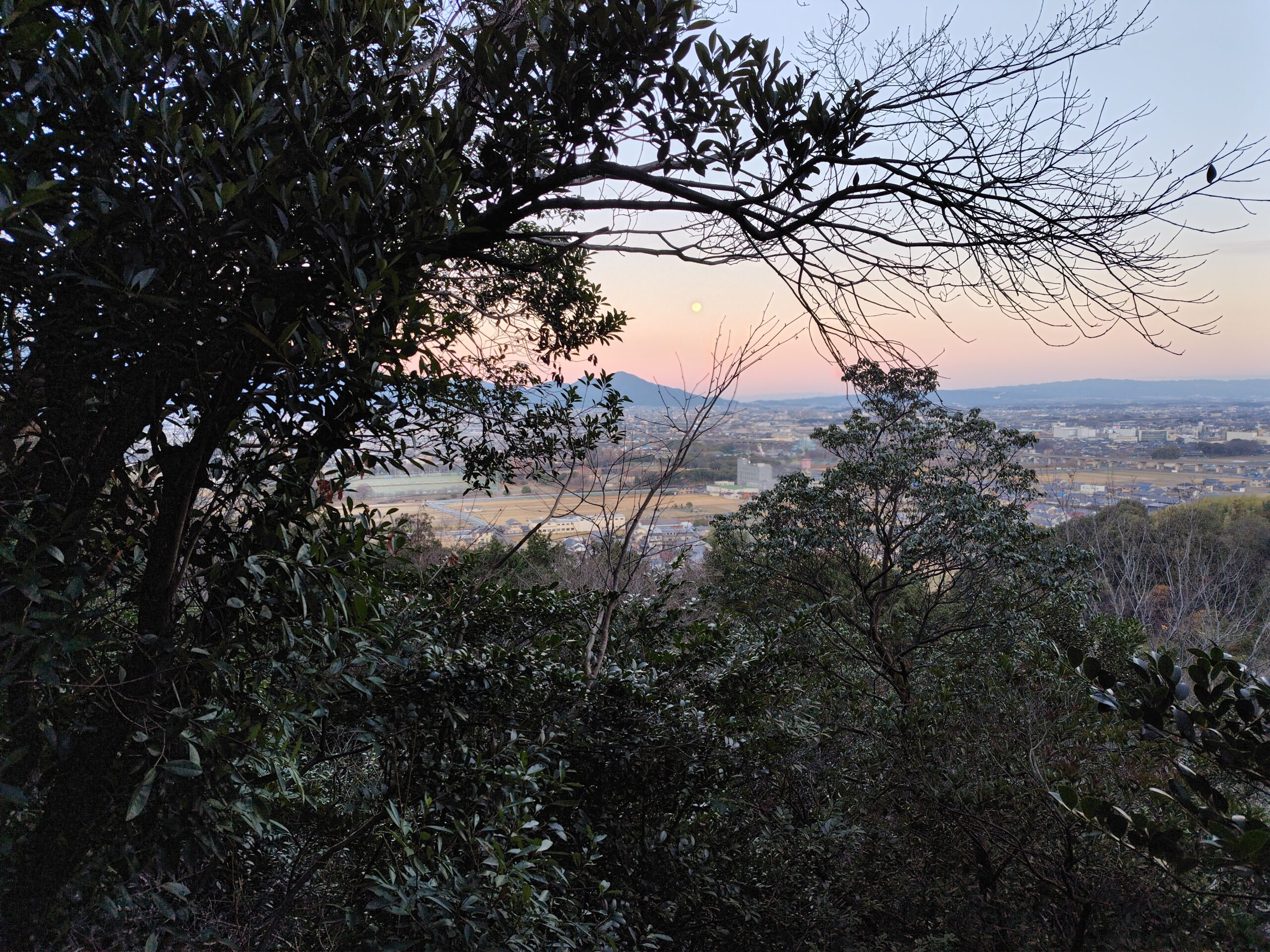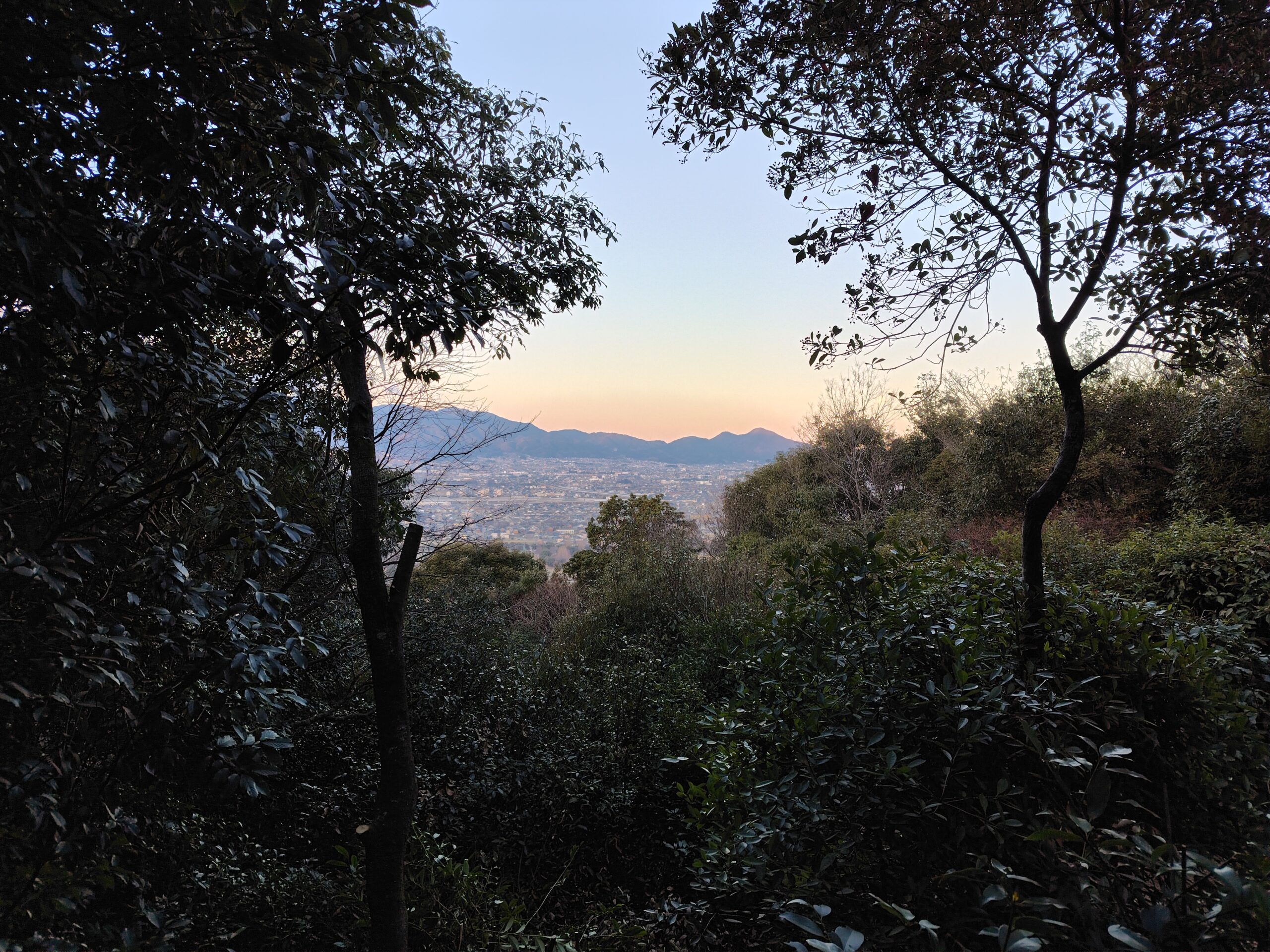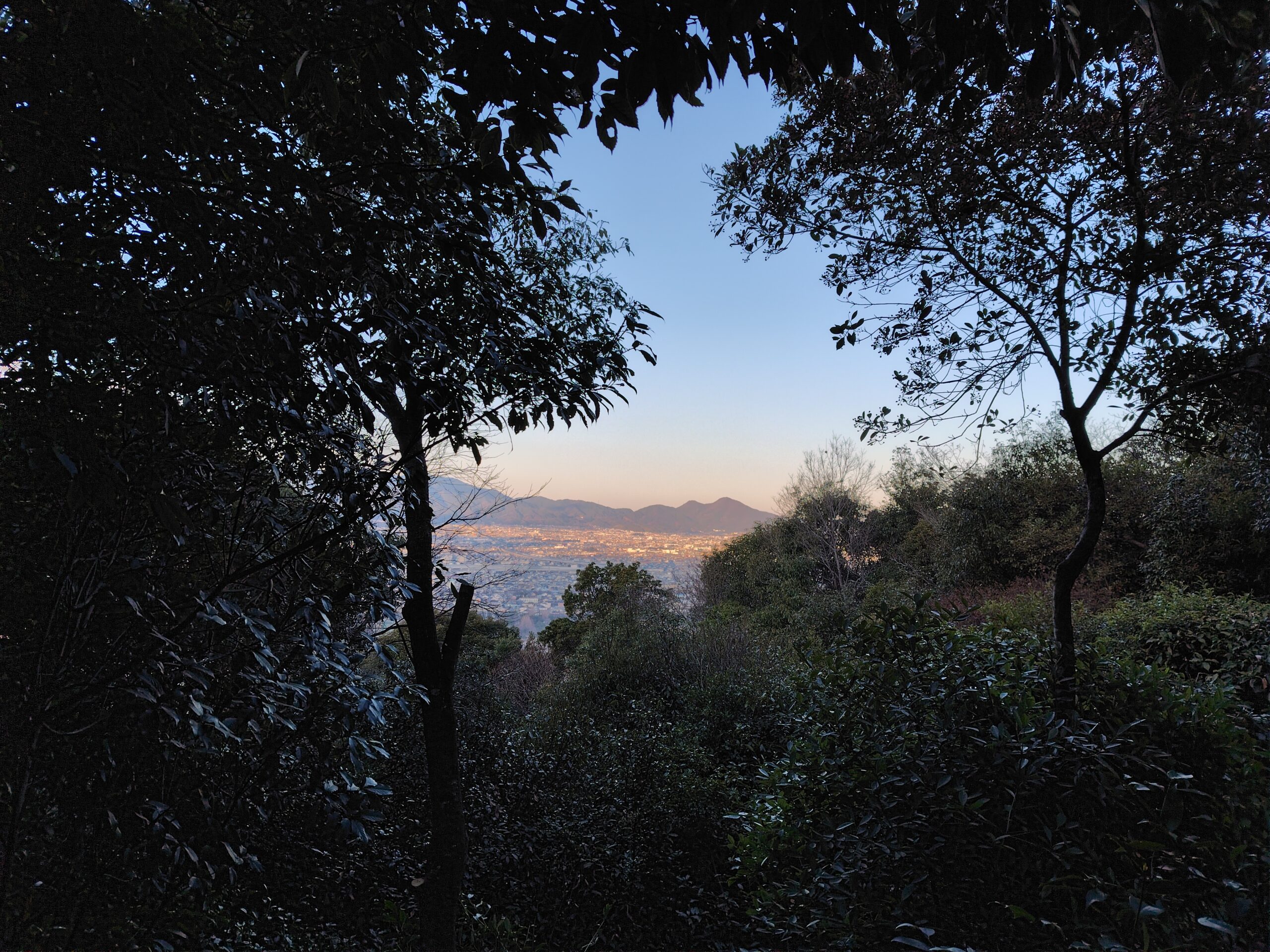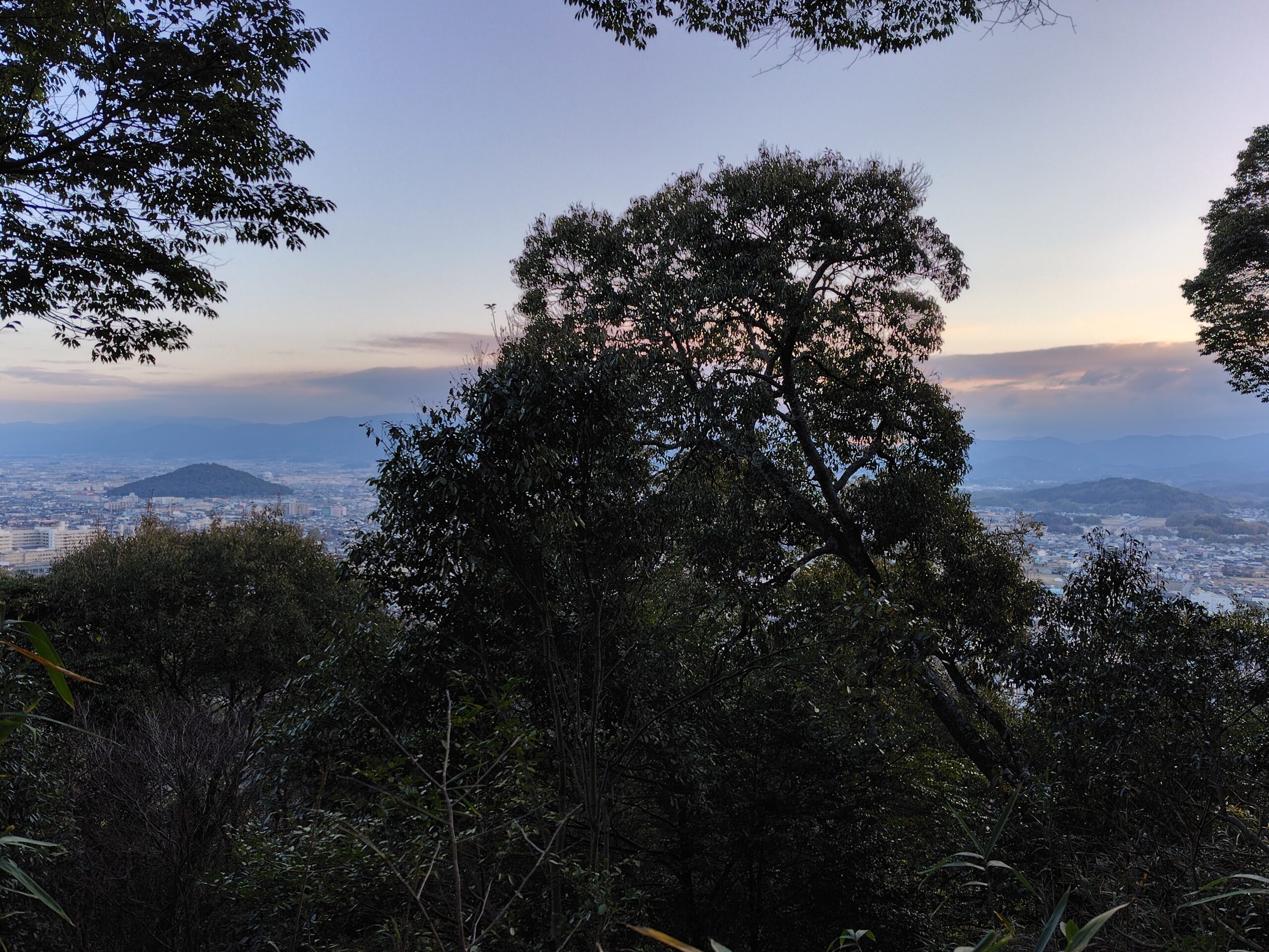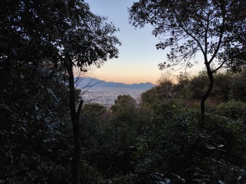 夜が明けてあたりがしんしんと白み始める橿原神宮の森から畝傍山へ登山開始