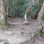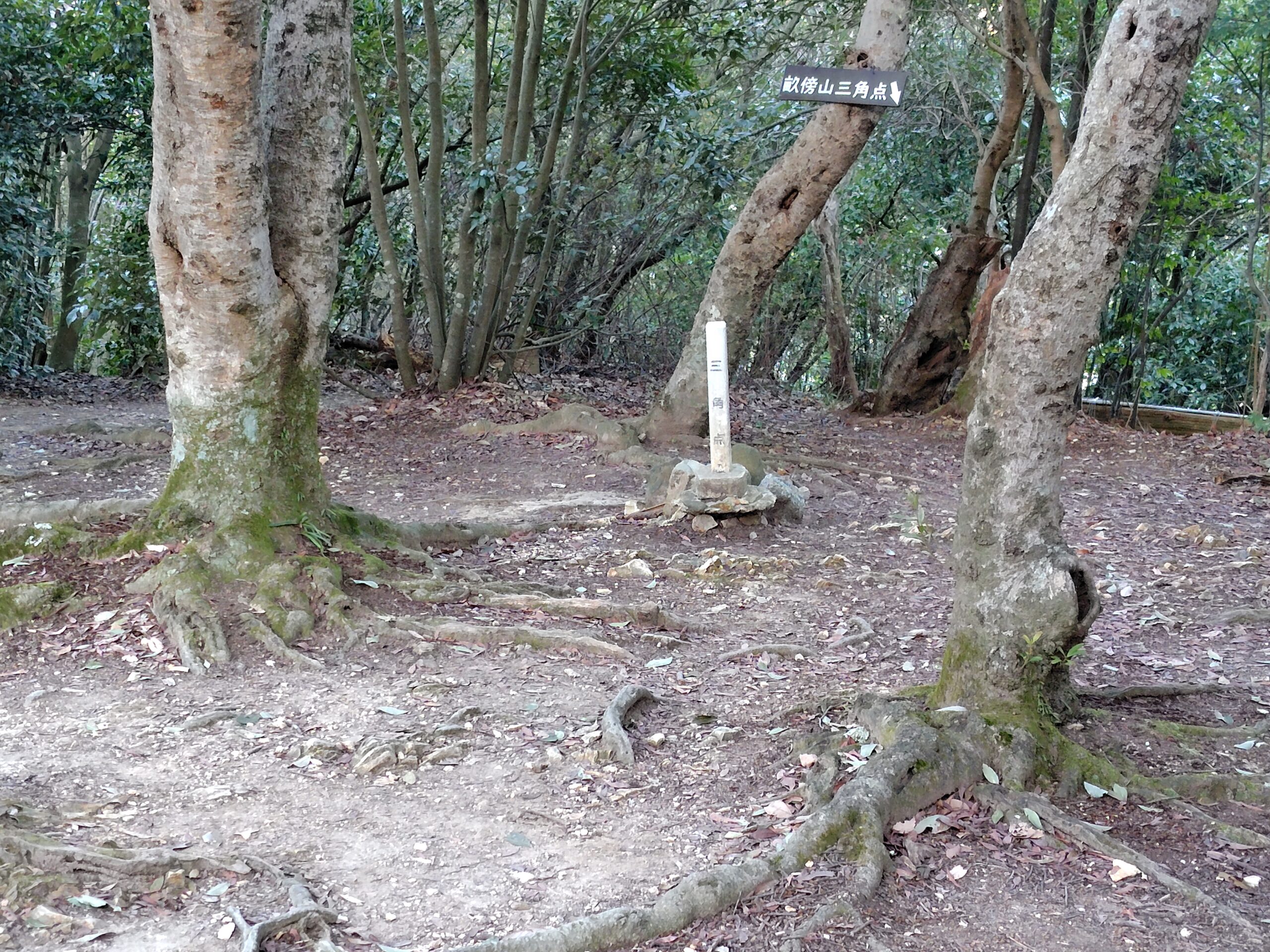 三角点に到着 三角点からは木々がうっそうと茂り、ご来光は望めず