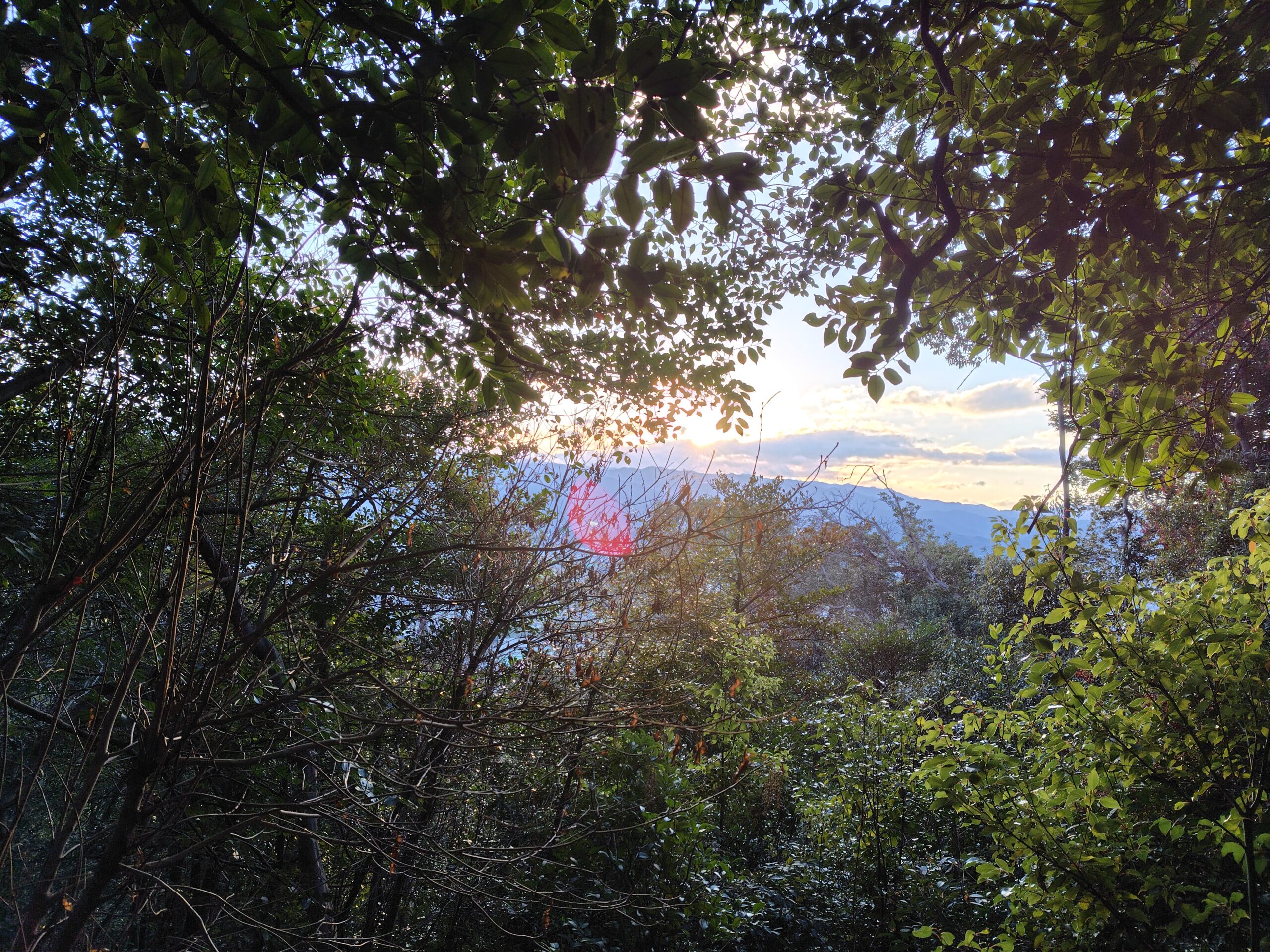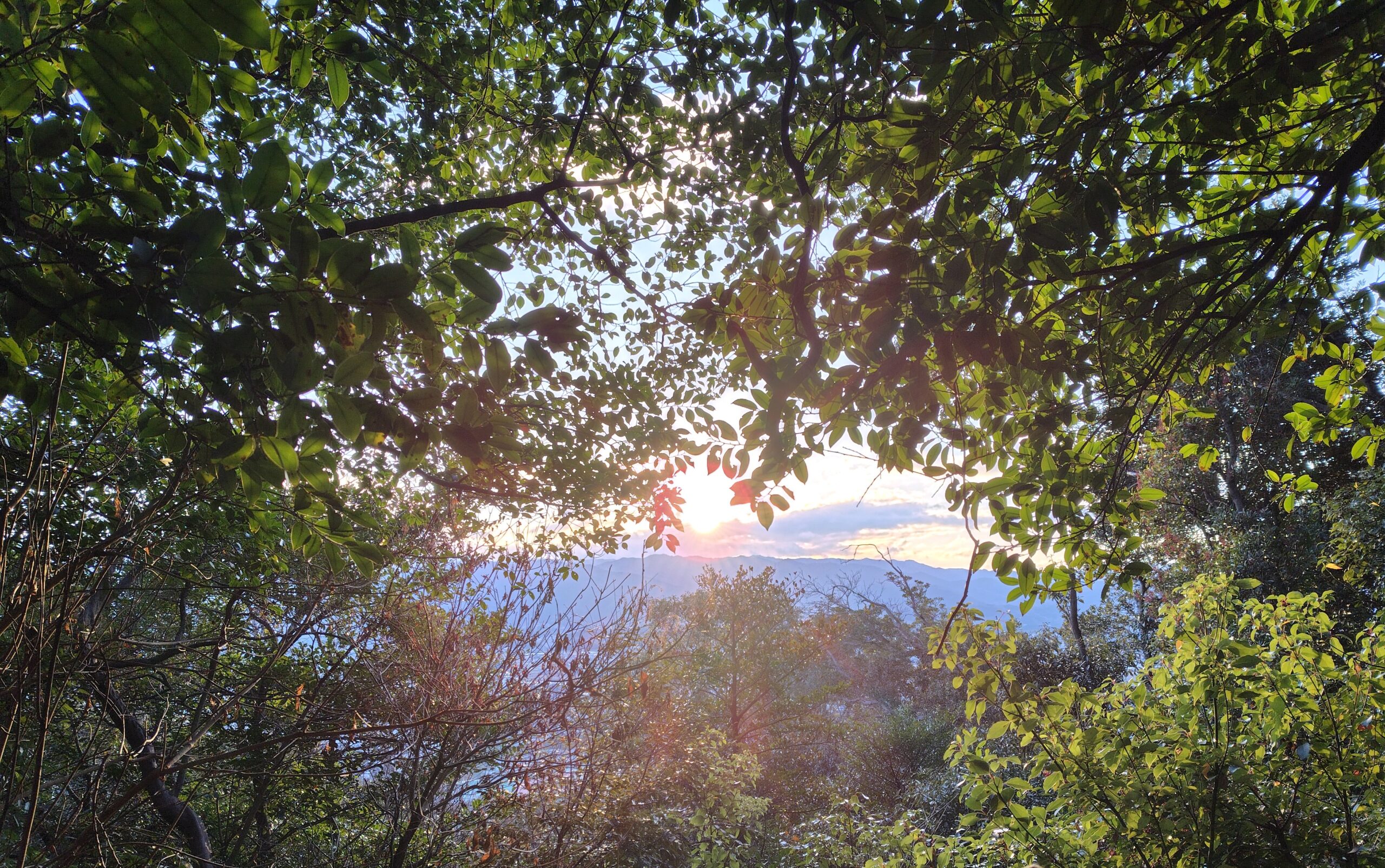 木々の間から朝日が訪れるのを感じるよ!