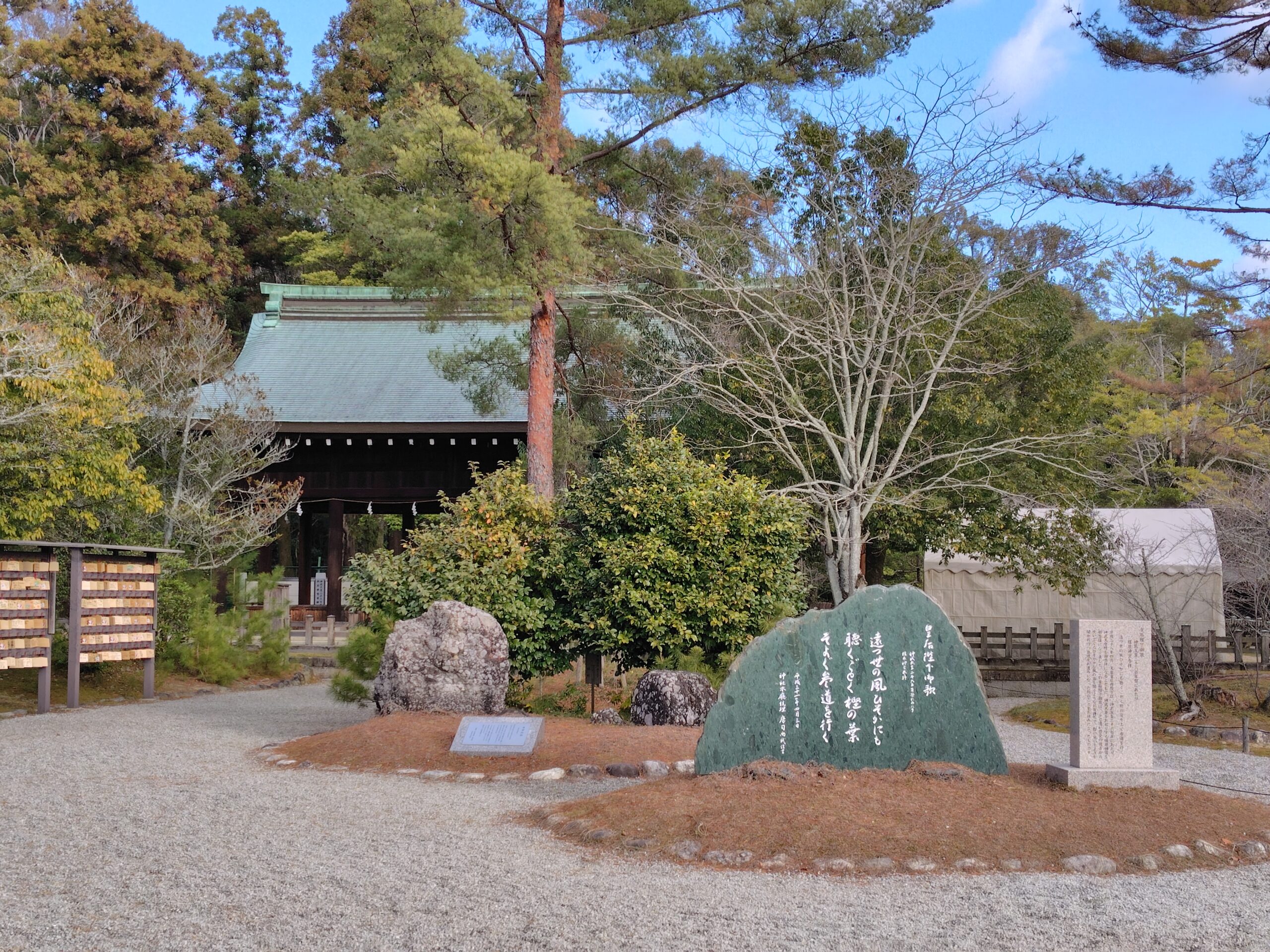 北神門から玉砂利を踏みしめ 右に皇后様歌碑とさざれ石を拝し 外拝殿