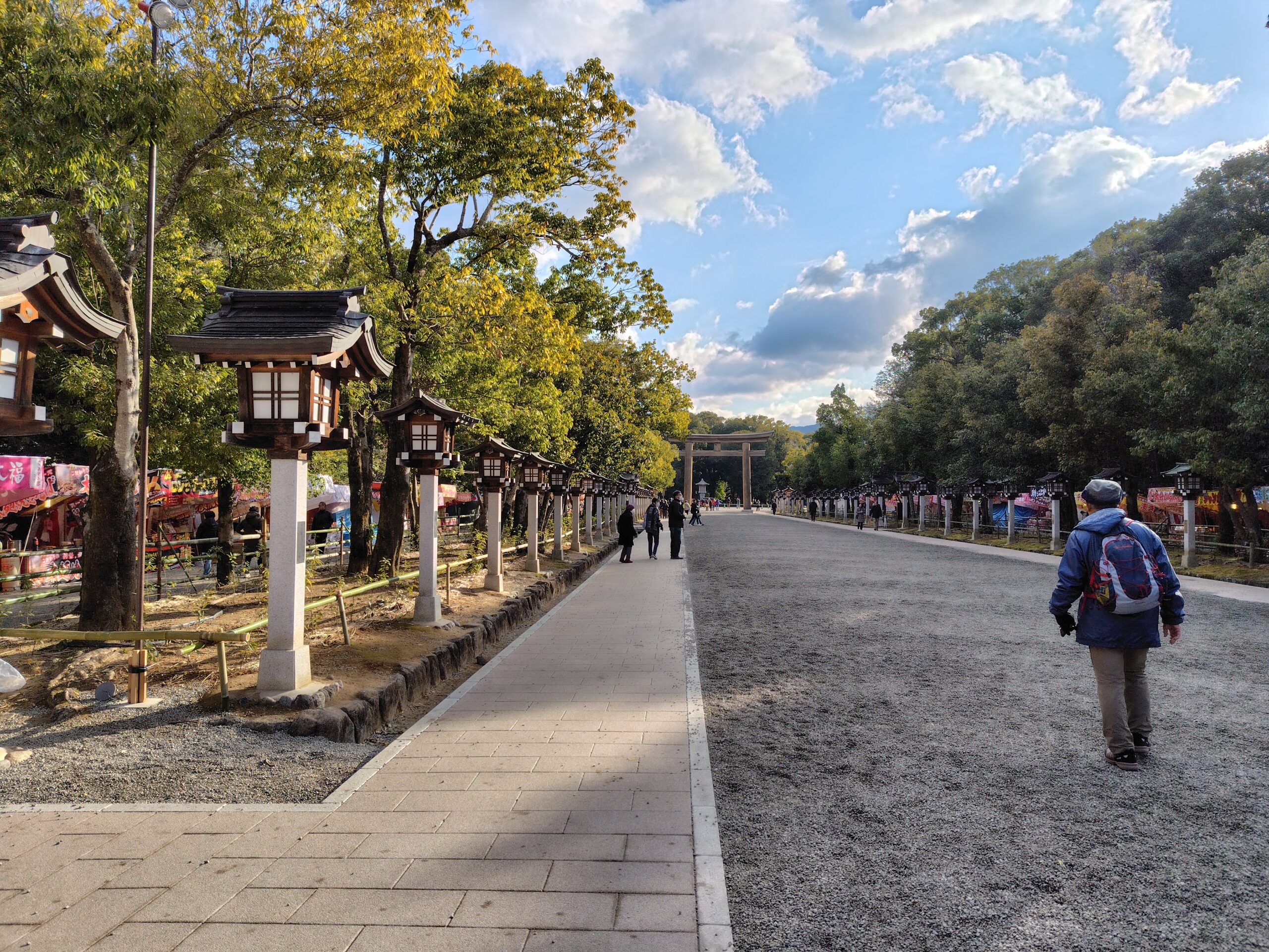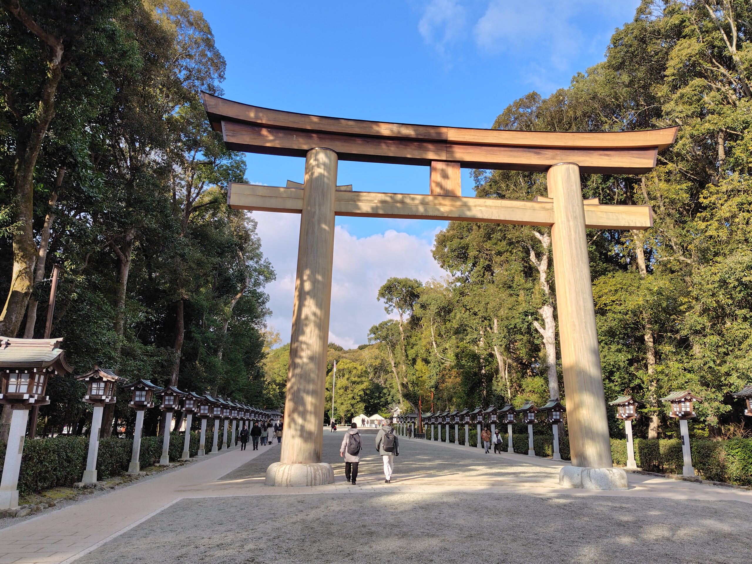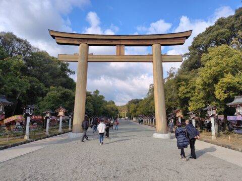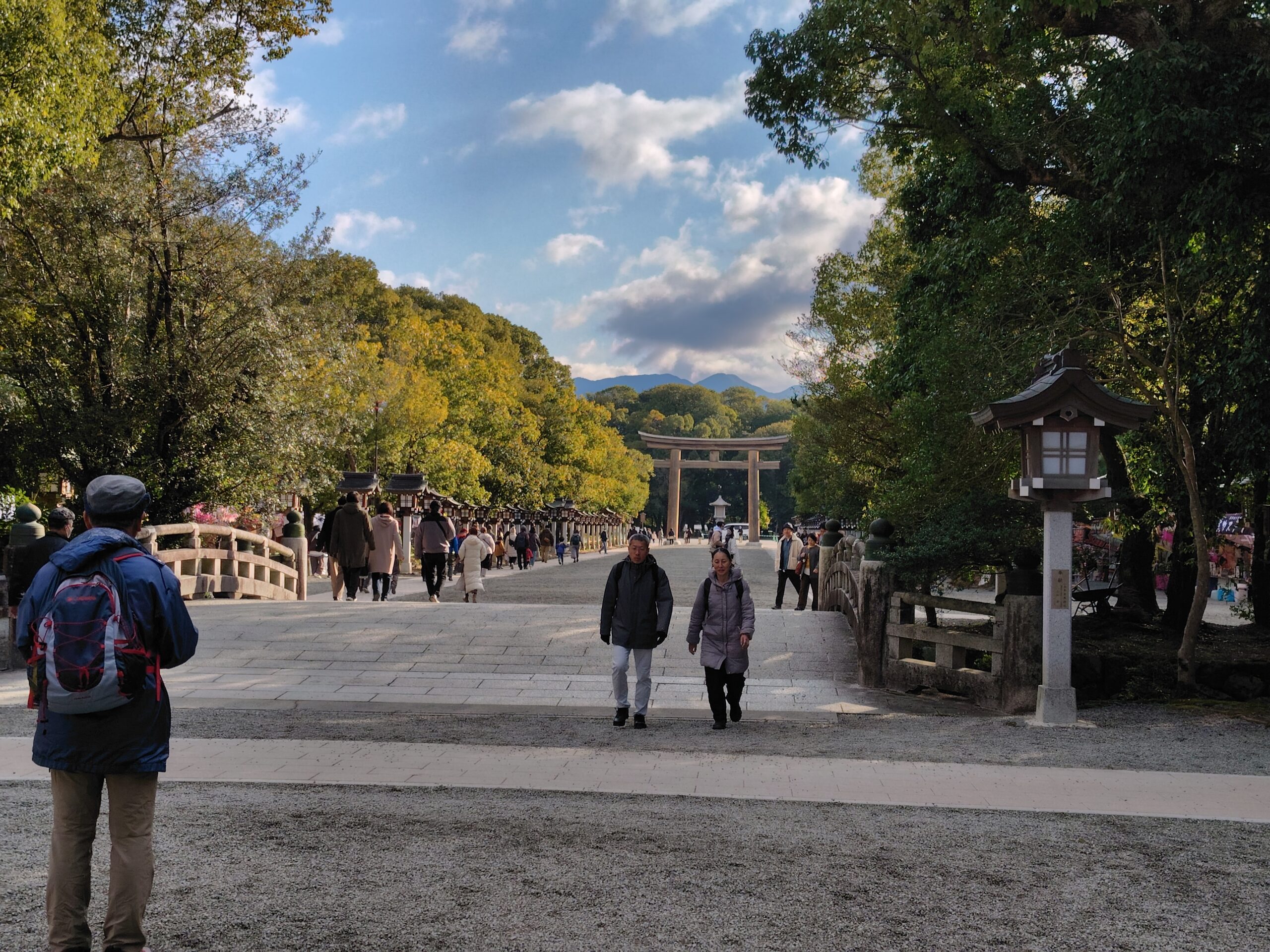 参拝後 玉砂利を踏みしめ南神門をくぐり表参道へ!