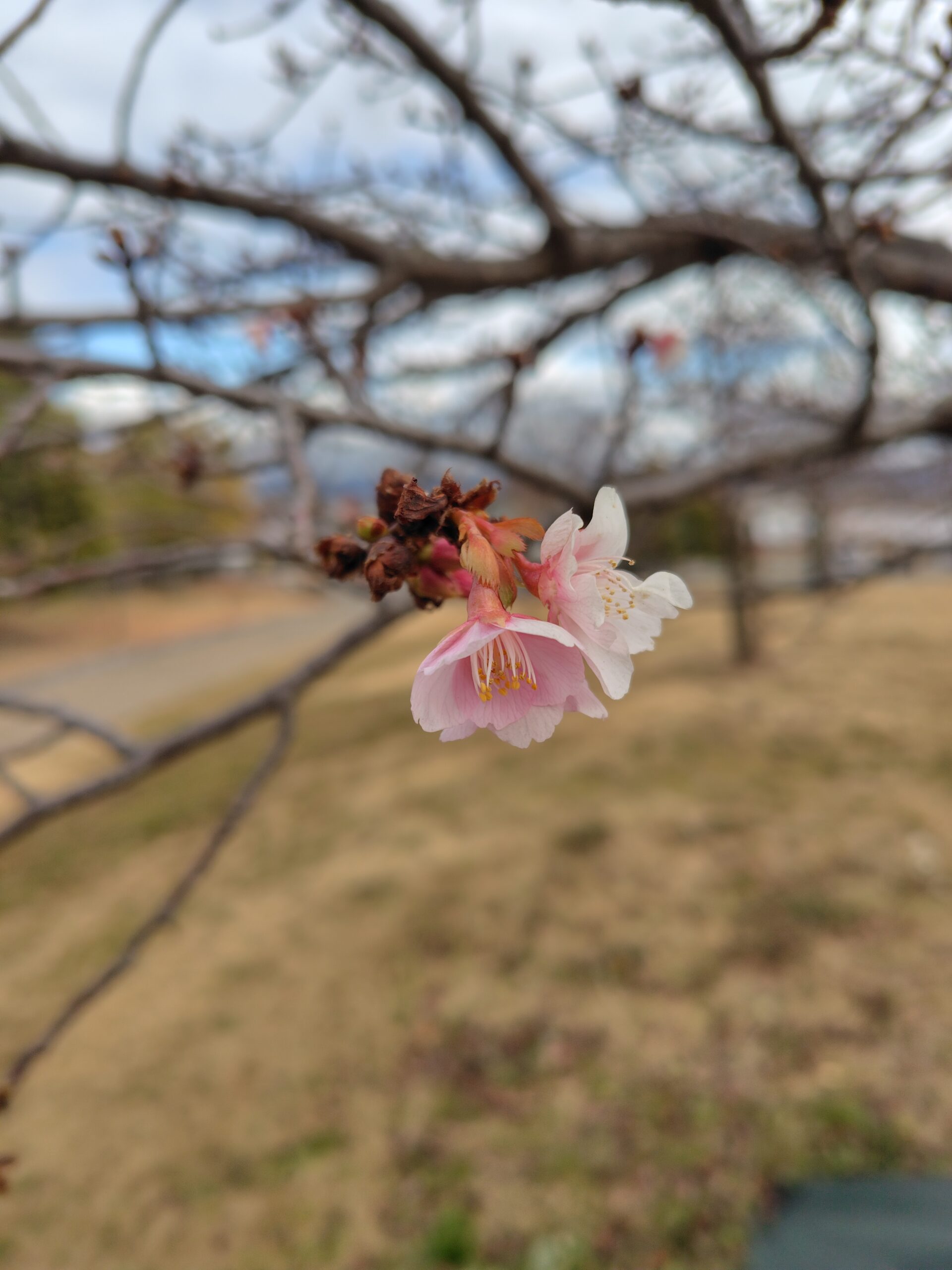 早速フライングの河津桜発見・・・少し早すぎ?