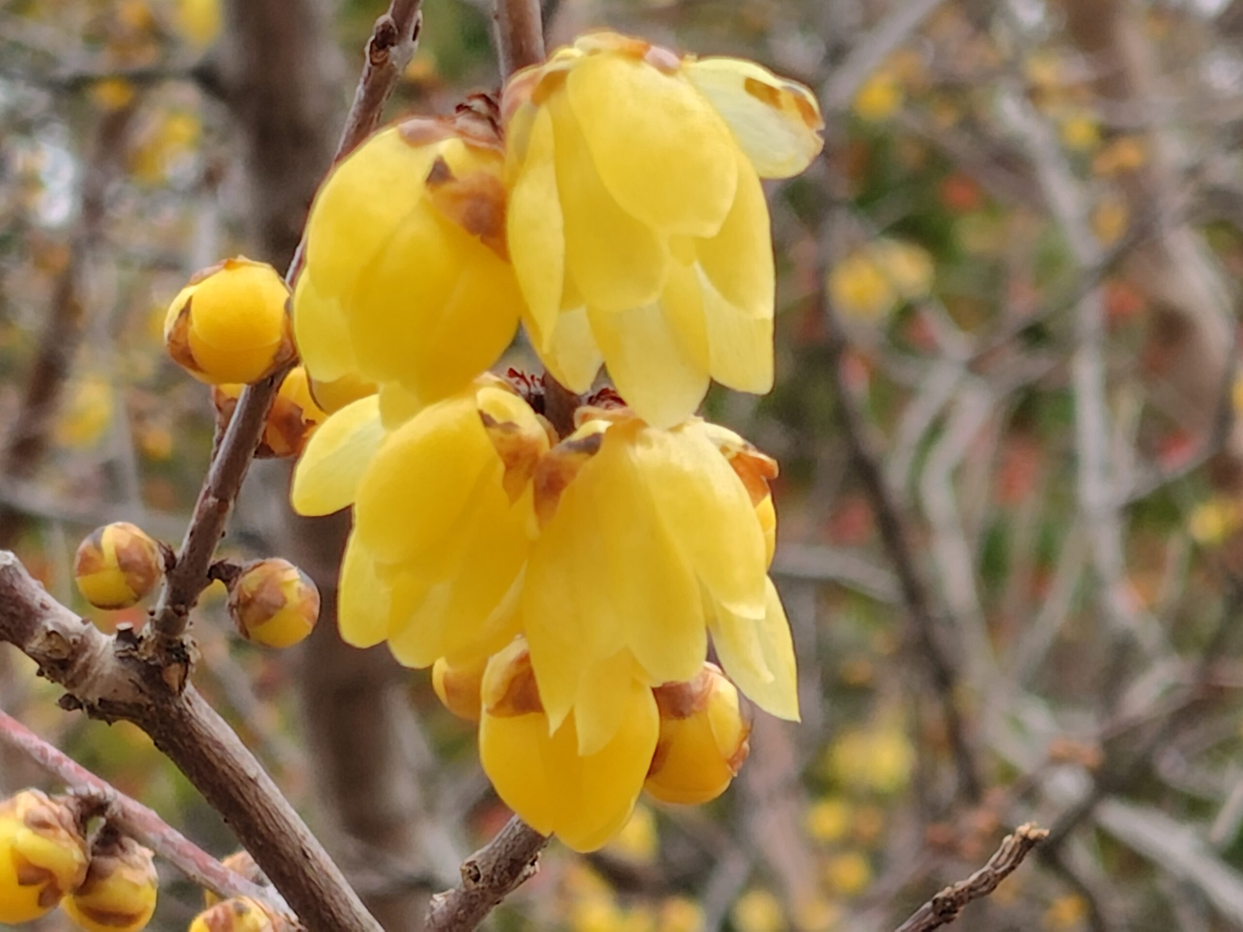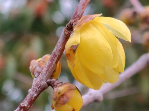蝋梅の甘い香りと半透明の黄色い花を咲かせる中国原産の蝋細工のような花