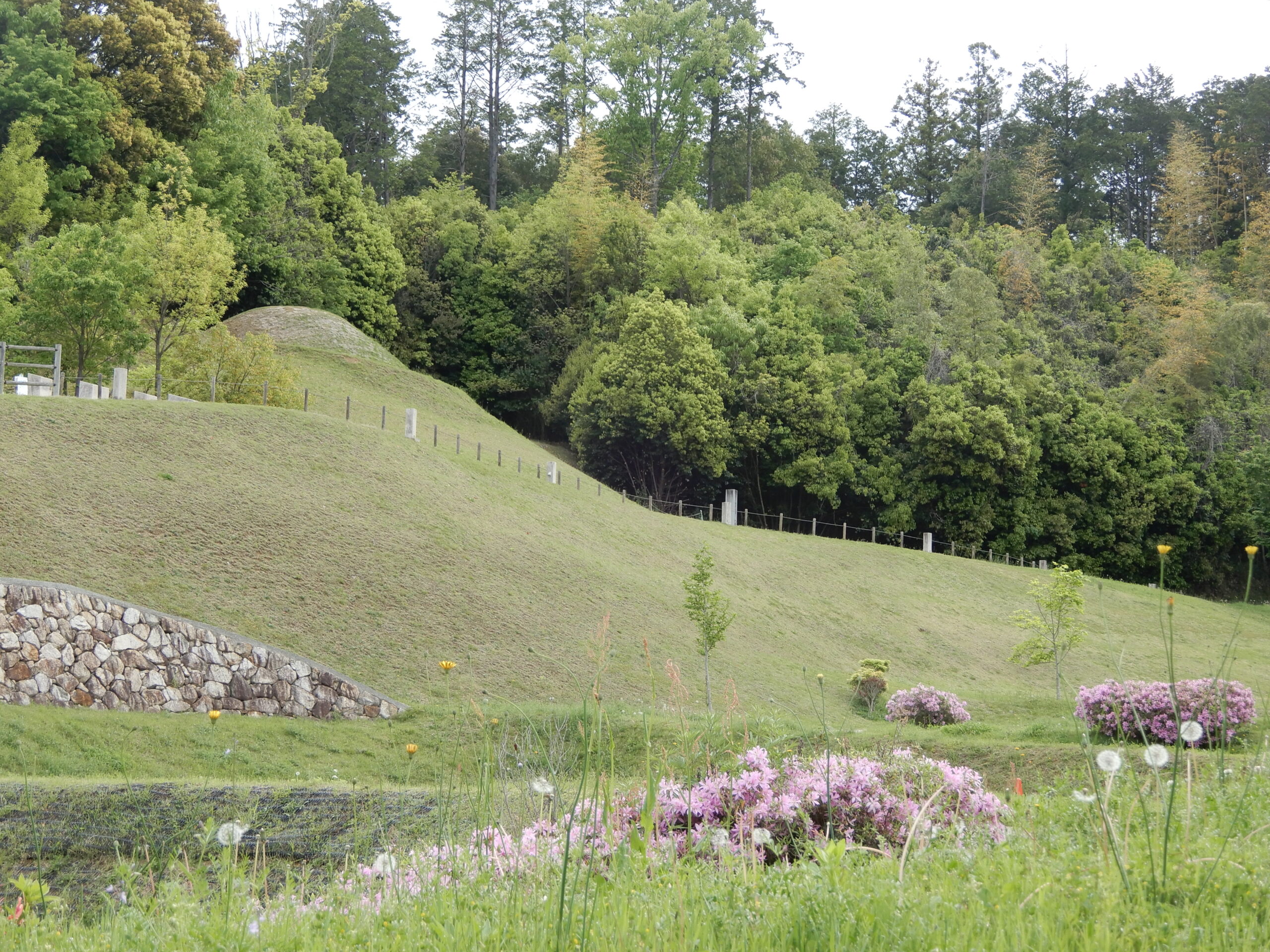 一部畑を耕していたよ・・・残念 キトラ古墳に寄り道 古墳とツツジ