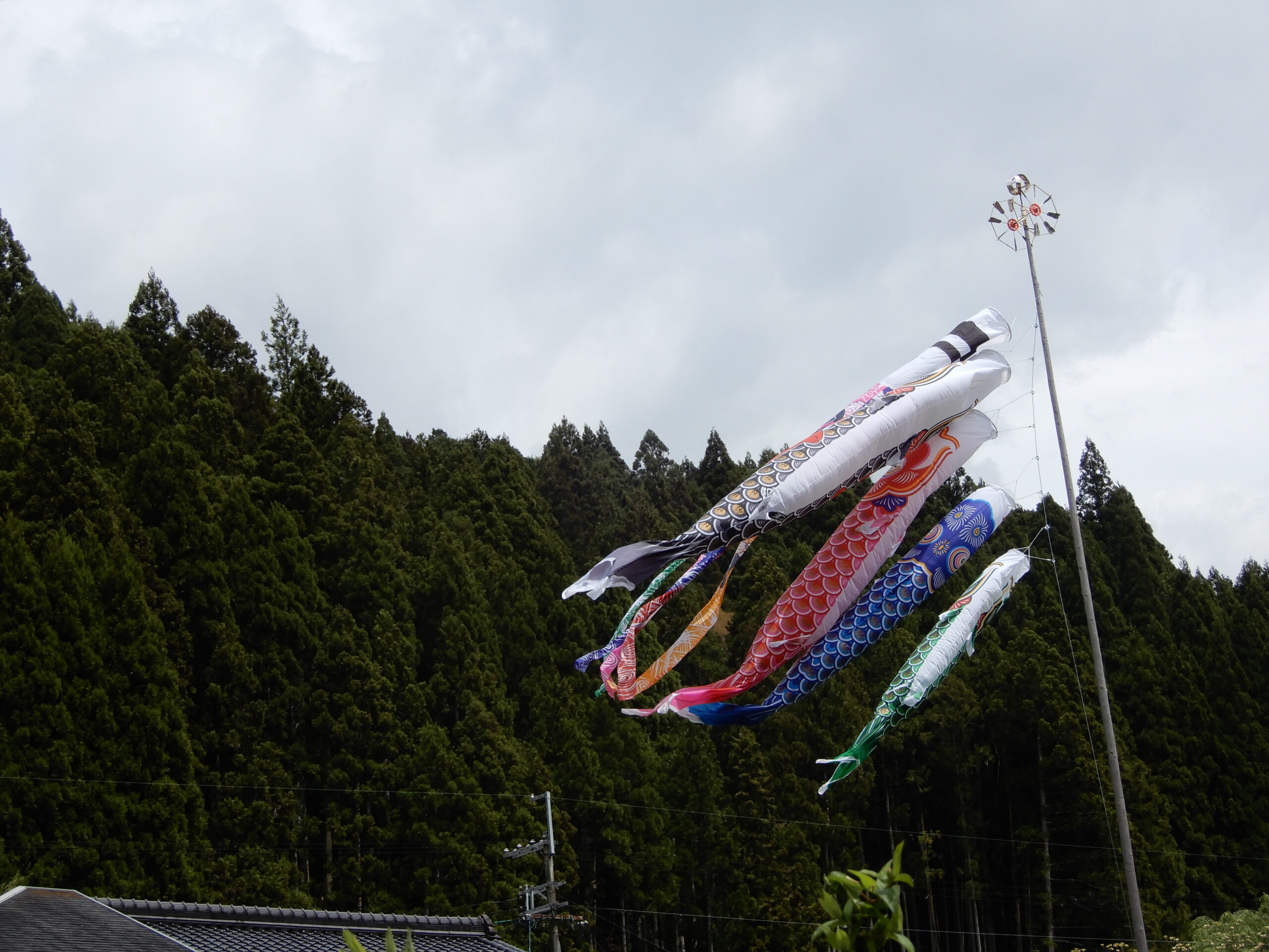 ドウダンツツジ 鯉のぼりを 紙すきの里遠望を楽しみ