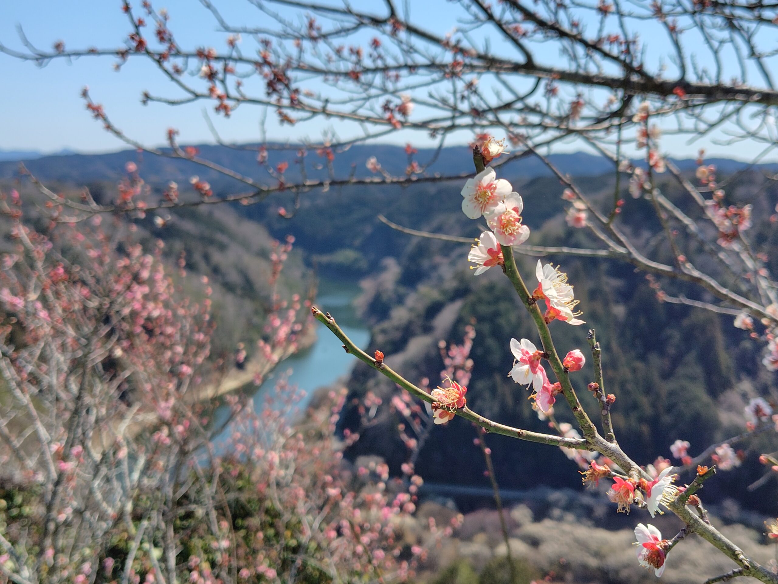 次は 木津川から名張川沿いの梅の名所月ヶ瀬梅林にハンドルを!